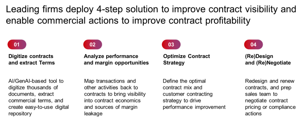- Little or no investment in digital solutions, contract excellence processes, and operating models that would help companies achieve higher margins through contract optimization.